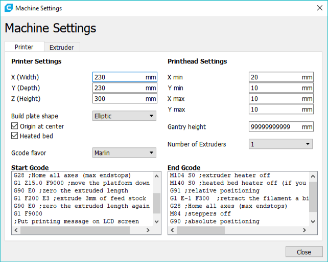 Just wondering what slicer profiles you guys are using for some quicker prints, i can't seem to find a balance between quality and speed. Copy the printer profile.json into your cura/resources. Just make sure to use the c:\\program files\\ultimaker cura 4.x folder paths. Download custom cura profile by jdharris; Jul 05, 2018 · i wondered too the first time i installed it (especially when anycubic talks about having a profil in cura 15.04). Unzip and go into the anycubic kossel linear plus folder, and the new profiles folder. One of disadvantages of a anycubic kossel delta printer is a poor computing power. In the end, you should be able to take any kossel system printer as bases, and tweek a few things. Aug 01, 2018 · hola chicos este es el mejor perfil para simplify3d que yo uso.disfrútenlo amigos y suscríbete! Here's how to add one.. Then when launching cura for the first time, the printer setup wizard will pick up the kossel profile file, and one can select it from the list of available printers (anycubiclinear plus in the other section) cura is very simple to use: